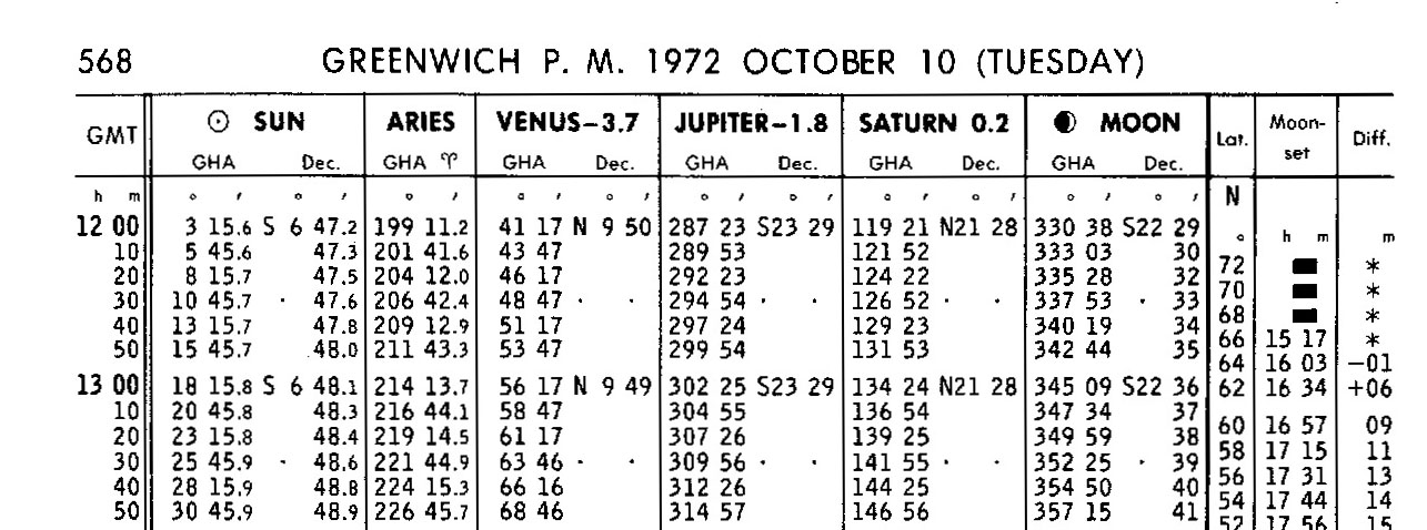 Air Almanac: 1972, September – December, Washington, United States Naval Observatory, 1972.