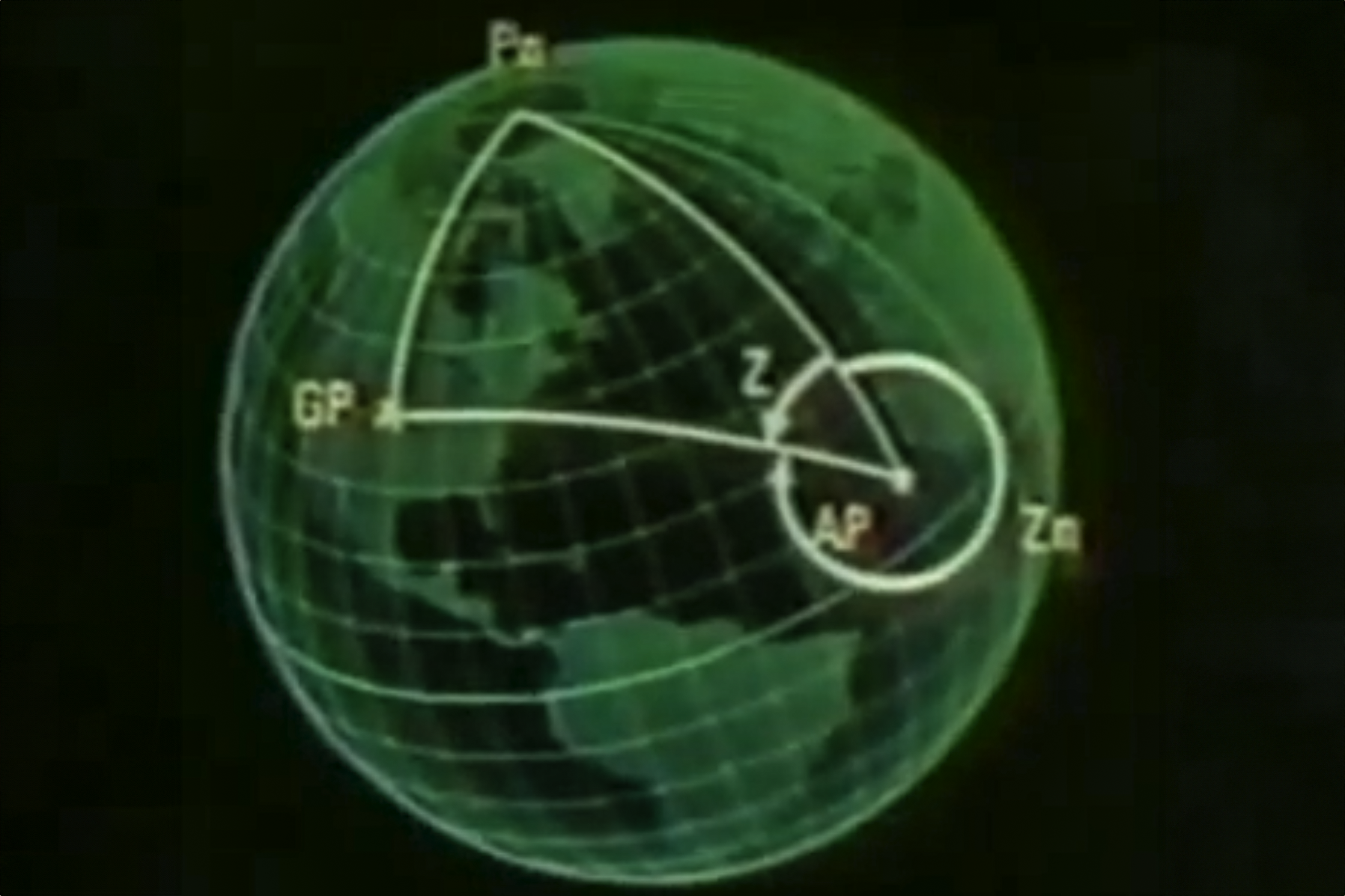 - [Pn ↔ AP] the line between the North Pole Pn and our Assumed Position AP