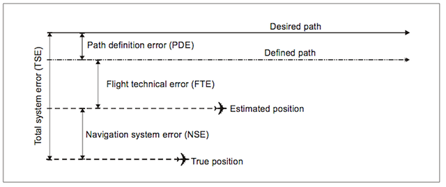 - RNAV systems conform to the ICAO performance-based navigation specification for total system error (TSE). RNAV total system error is the 95% probability that the navigation system accuracy remains within the limits defined for the RNAV operation. For example, during an RNAV-1 operation the TSE remains within one nautical mile of the desired path 95% of the time.