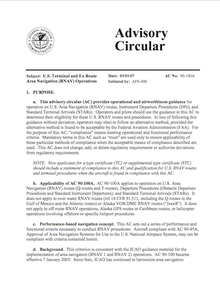 Advisory Circular 90-100A, U.S. Terminal and En Route Area Navigation (RNAV) Operations, Change 2, 4/14/15, U.S. Department of Transportation